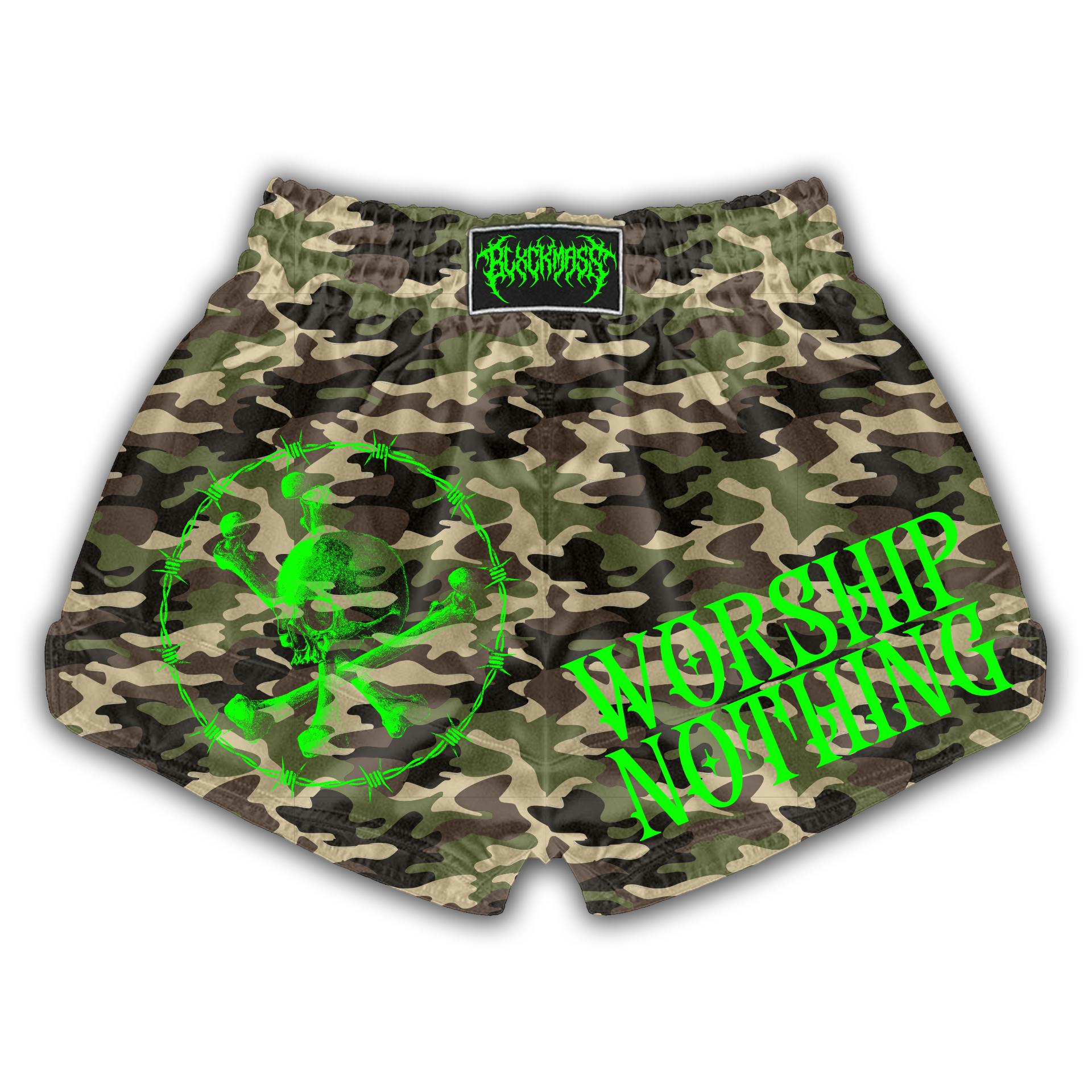 Custom Muay Thai Camo shorts with Skull and Bones print